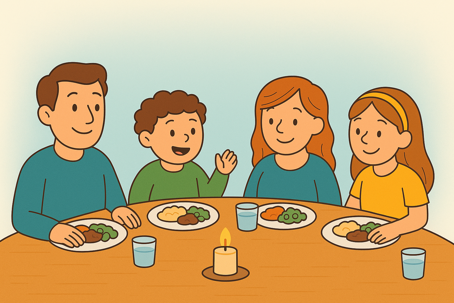 “We’re going to try a new family ritual. Every night at dinner, each of us will share one thing we’re grateful for. It can be big or small, silly or serious — whatever feels true today.”