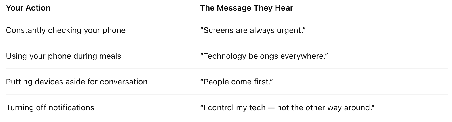 Children learn through imitation — it’s how empathy, speech, and self-regulation develop. In the digital age, that extends to how we use technology.